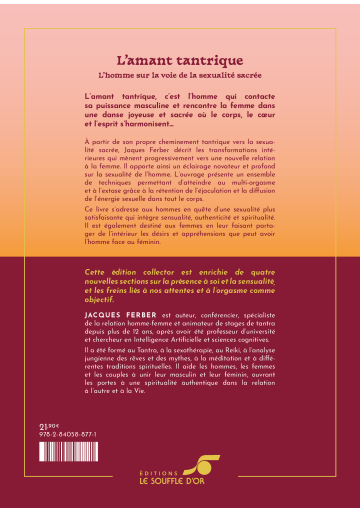 À partir de son propre cheminement tantrique vers la sexualité sacrée, Jaques Ferber décrit les transformations intérieures qui mènent progressivement vers une nouvelle relation à la femme.