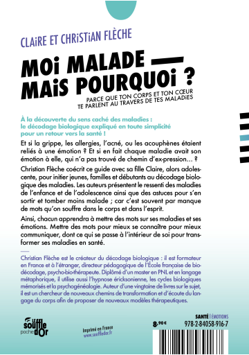 Christian Flèche coécrit avec sa fille Claire, alors adolescente, pour initier jeunes, familles et débutants au Décodage Biologique des maladies. Les auteurs présentent le ressenti des maladies de l’enfance et de l’adolescence ainsi que des astuces pour s’en sortir et tomber moins malade ; car c’est souvent par manque de mots qu’on souffre dans le corps et dans l’esprit.