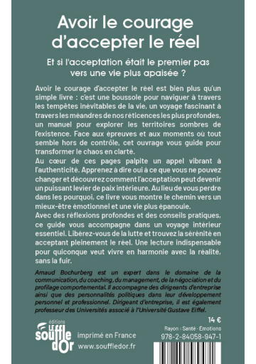 Avoir le courage d'accepter le réel est bien plus qu’un simple livre : c’est une boussole pour naviguer à travers les tempêtes inévitables de la vie, un voyage fascinant à travers les méandres de nos réticences les plus profondes, un manuel pour explorer les territoires sombres de l’existence. Face aux épreuves et aux moments où tout semble hors de contrôle, cet ouvrage vous guide pour transformer le chaos en clarté.