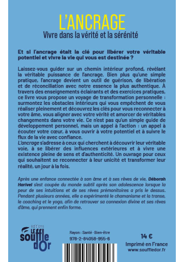 L'ancrage : Vivre dans la vérité et la sérénité vous guide dans un voyage intérieur pour vous reconnecter à votre essence et à votre vérité profonde. Bien plus qu’une pratique simple, l’ancrage possède une puissance cachée, capable de lever les obstacles qui vous empêchent de vivre une vie épanouie, pleine d’amour et de liberté.