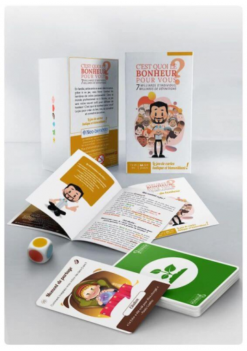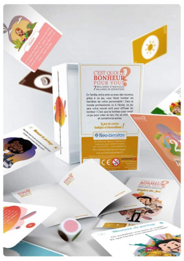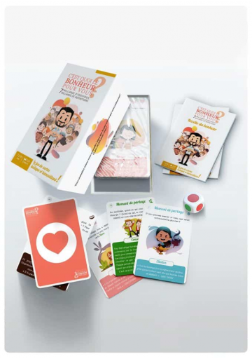 Inspiré du film du même nom, vu par plus de 2 millions de spectateurs, ce jeu a nécessité plus de deux ans de préparation afin de permettre à tous d'intégrer le bonheur et la bienveillance dans son quotidien et celui de son entourage. Car comment passer des enseignements du film à une mise en pratique, très concrète, dans la vie de tous les jours ? Quelles sont les actions à lancer, les réflexions à suivre ? Avec le jeu de cartes C'est quoi le bonheur pour vous ?, un nouveau chemin s'ouvre, riche en possibilités et en sources d'inspiration, pour intégrer le bonheur et la bienveillance dans son quotidien et celui de son entourage.