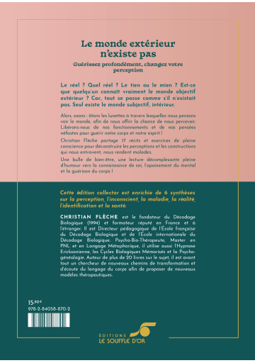 Seul existe le monde subjectif, intérieur. Alors, osons : ôtons les lunettes à travers lesquelles nous pensons voir le monde, afin de nous offrir la chance de nous percevoir. Libérons-nous de nos fonctionnements et de nos pensées néfastes pour guérir notre corps et notre esprit !